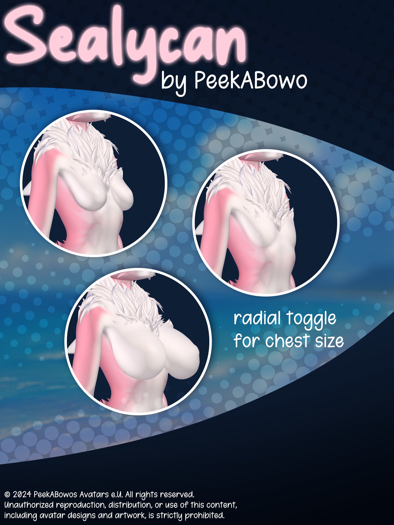 When you purchase one of my avatars, the file is uniquely tied to you. No matter where it goes, it will always be traced back to you.